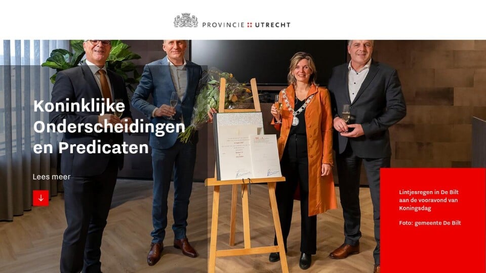 Met Koninklijke onderscheidingen, Predicaten en Koninklijke Erepenningen drukt de Koning zijn waardering uit voor personen, organisaties en bedrijven in onze provincie die op een bijzondere manier bijdragen aan onze samenleving. Alle aanvragen van Utrechtse gemeenten voor Koninklijke onderscheidingen worden behandeld door mijn kabinet en voorzien van een advies.
