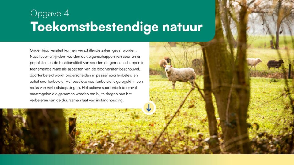 Onder biodiversiteit kunnen verschillende zaken gevat worden. Naast soortenrijkdom worden ook eigenschappen van soorten en populaties en de functionaliteit van soorten en gemeenschappen in toenemende mate als aspecten van de biodiversiteit beschouwd. Soortenbeleid wordt onderscheiden in passief soortenbeleid en actief soortenbeleid. Het passieve soortenbeleid is geregeld in een reeks van verbodsbepalingen. Het actieve soortenbeleid omvat maatregelen die genomen worden om bij te dragen aan het verbeteren van de duurzame staat van instandhouding.